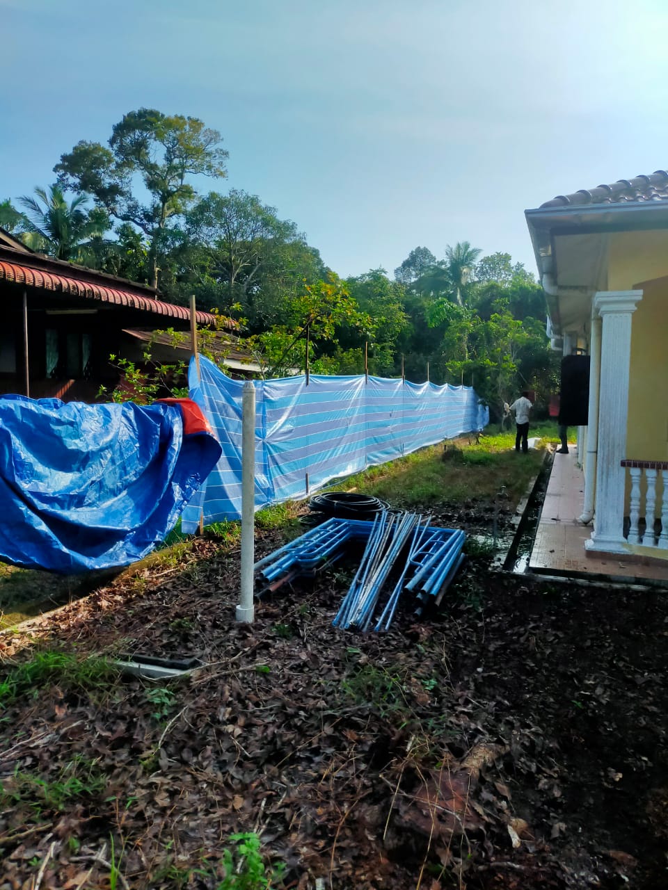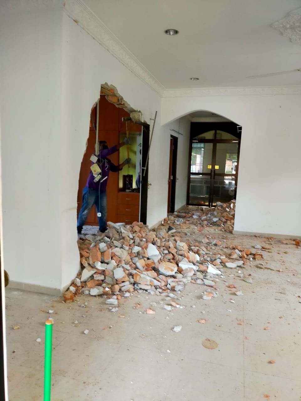 Today the contractor is at the house in Muar to hack the walls . Encik Rahman is there too at the house to lay out the “tapak” ( site) for the garden shed .