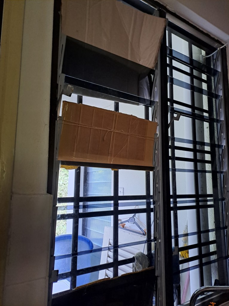 Third attempt by the monkeys to come into my kitchen 2 days ago. They broke a third window pane . I feel I under siege by the monkeys. !! I am afraid now to go out to my balconies to water my plants or dry my washing.