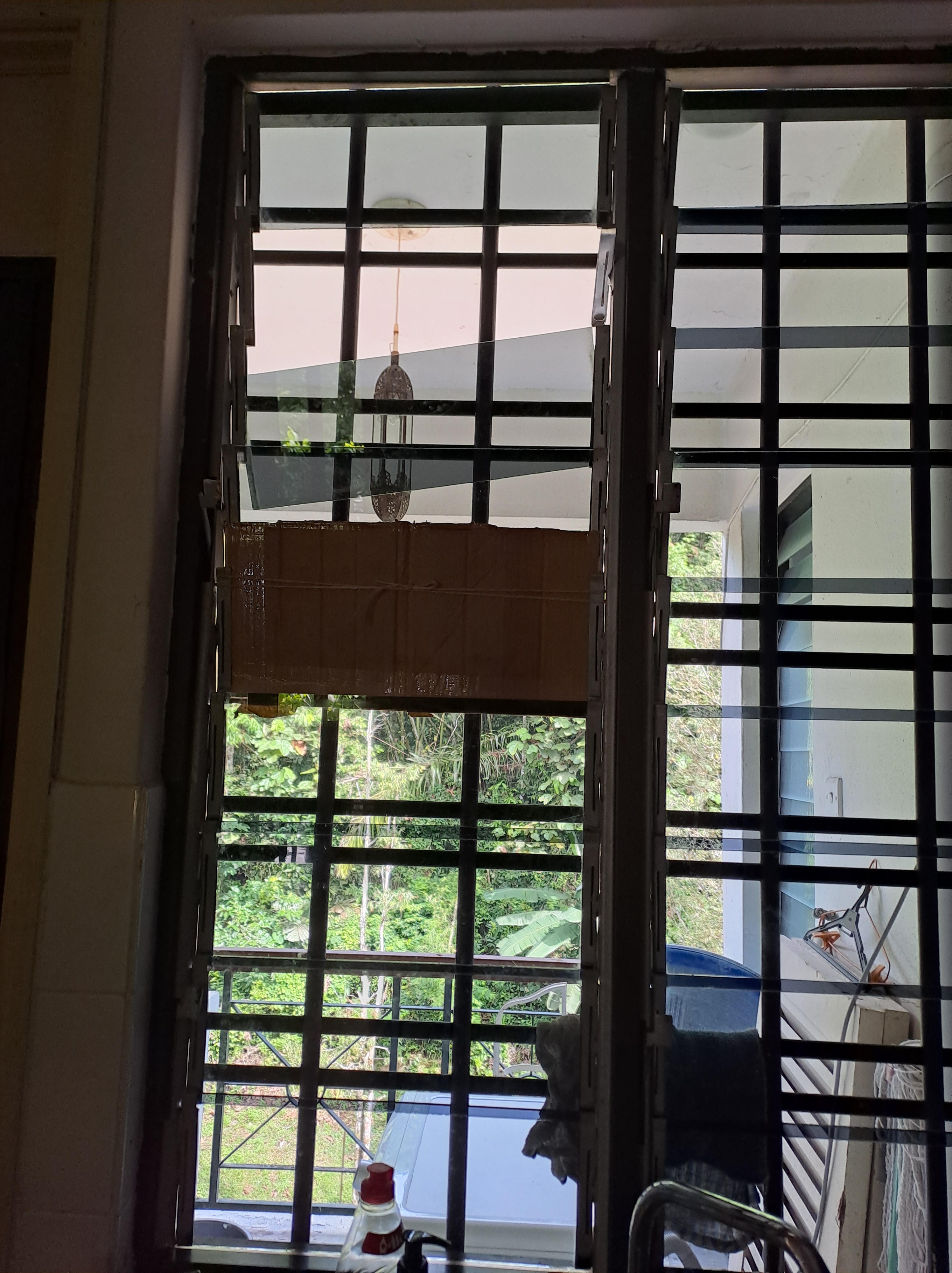 Third attempt by the monkeys to come into my kitchen 2 days ago. They broke a third window pane . I feel I under siege by the monkeys. !! I am afraid now to go out to my balconies to water my plants or dry my washing.