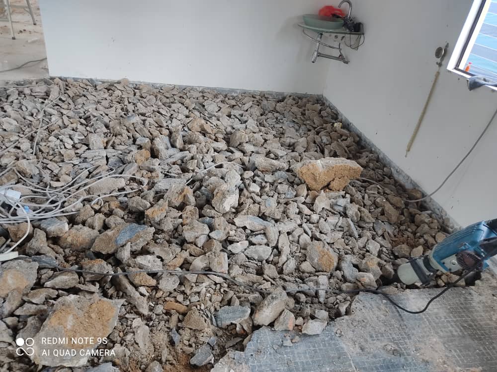 Contractor had to dig up the tiles on the floors and they found that there is no proper foundation of concrete or even metal pilings on the floor . The floor is just rubble and stones so if new walls & new tiles were put up, the house may collapse ( worst scenario) or new tiles on the walls will pop up ! Might have to do piling which adds to the costs of reno !!