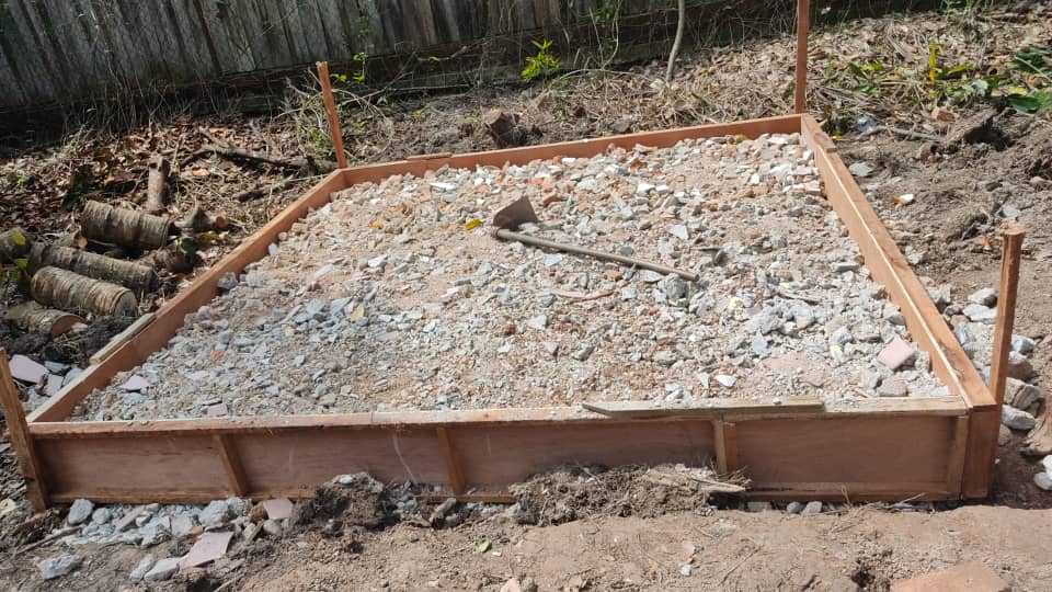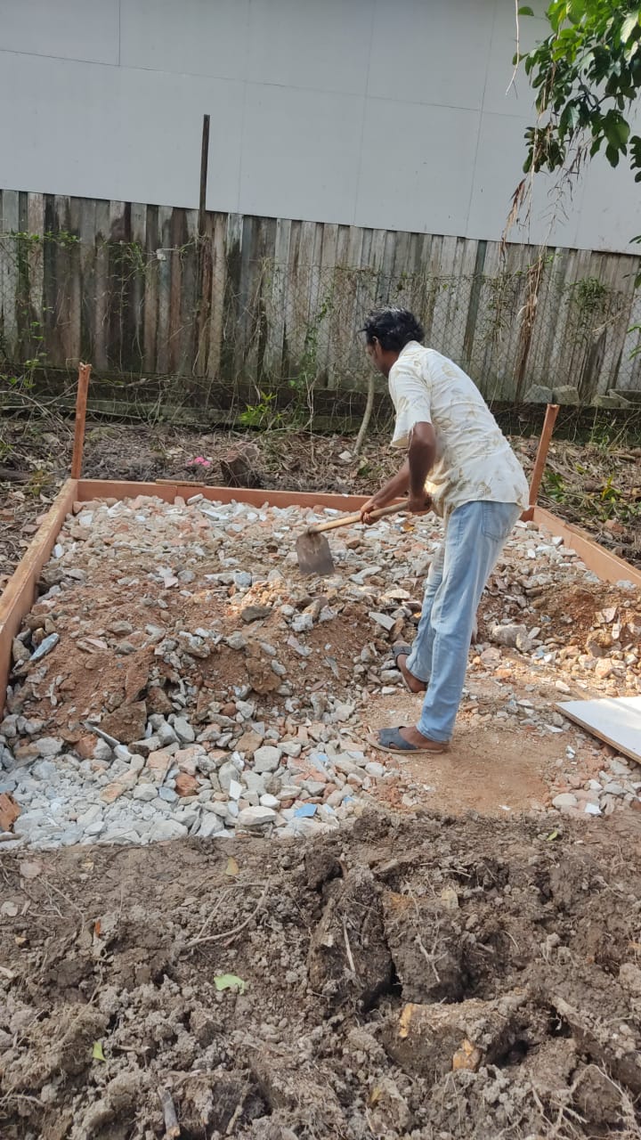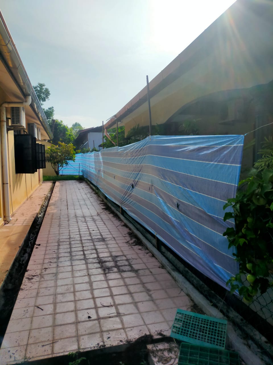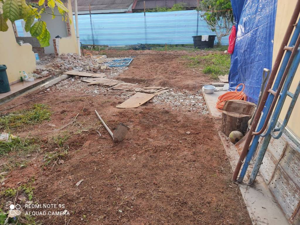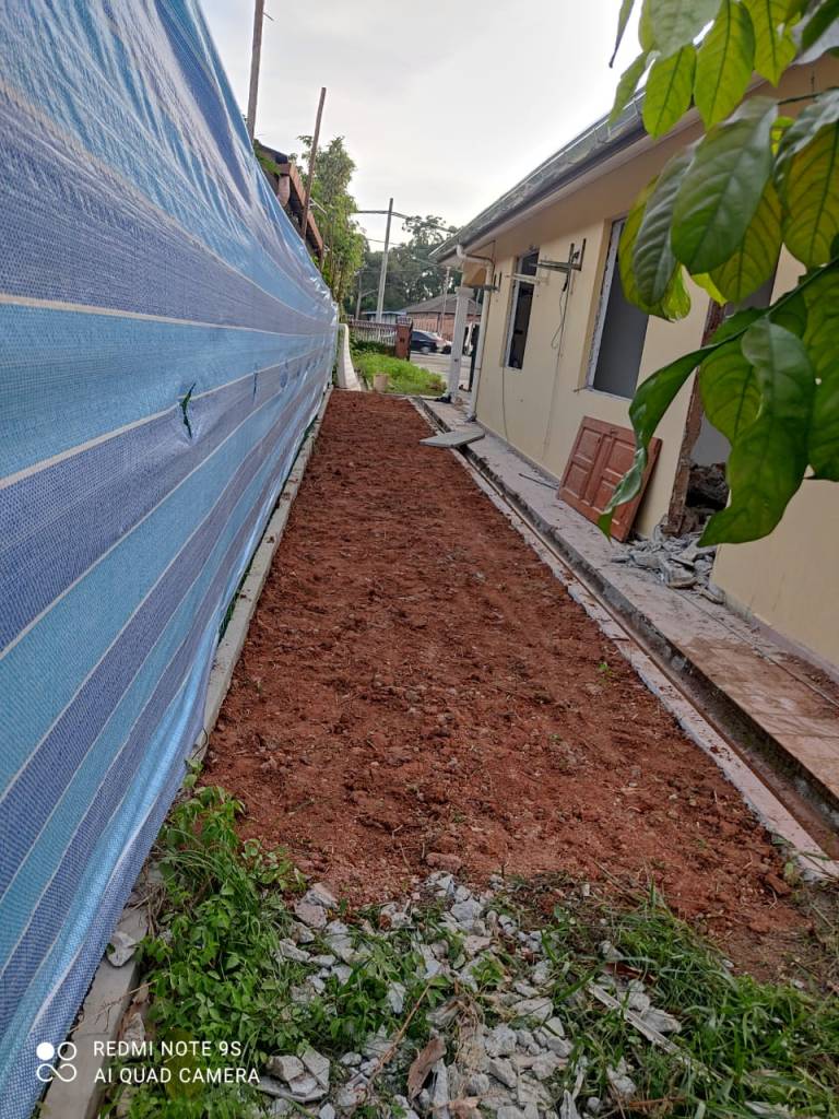 There is pathway between the driveway of the main house that leads to the Rumah Kebun . Have told the contractor to put down lights at the eaves of the side of the house so that the pathway is lit if used at night.