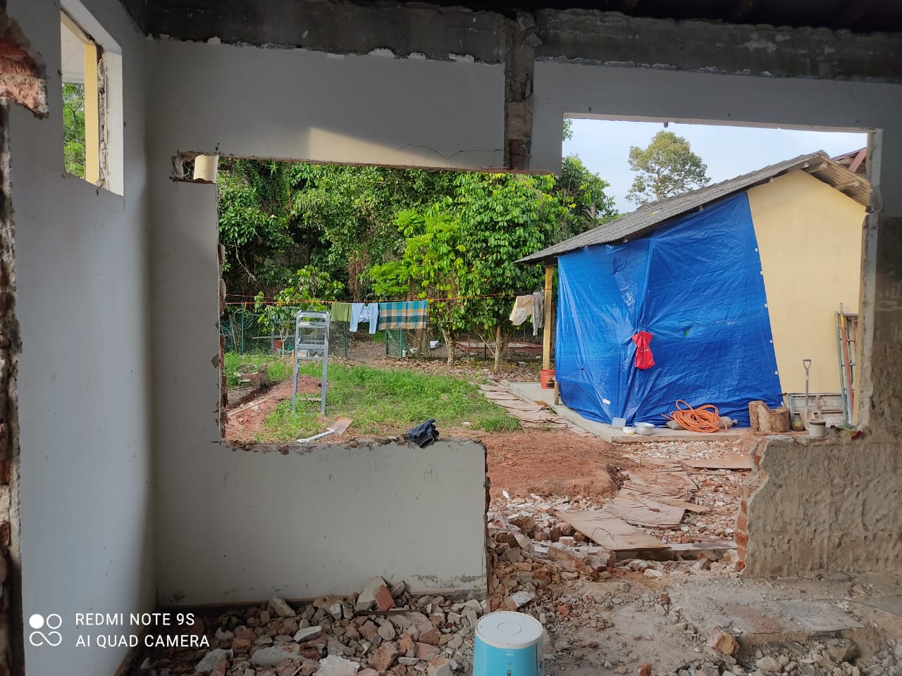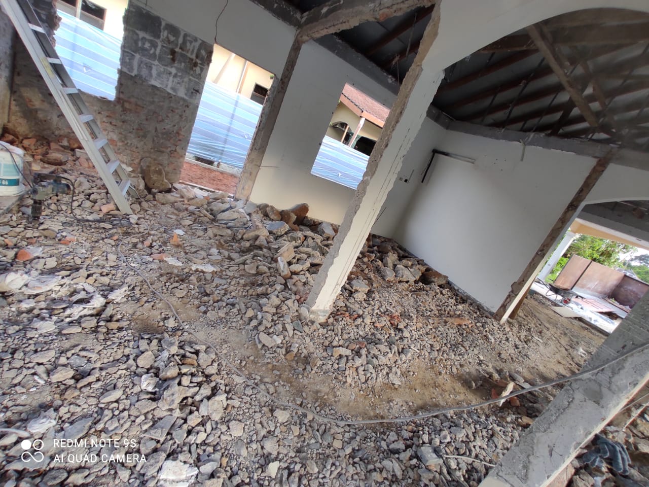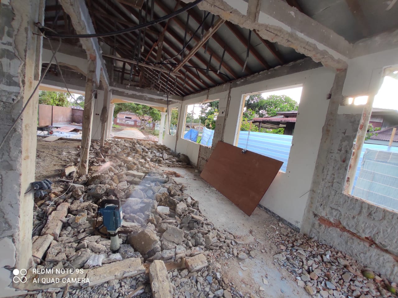 This is the current state of the house . The remaining structure that is left is only the walls and the roof . The rest of the house will be new . Sigh. This cannot be helped as the house has no concrete or metal piling .