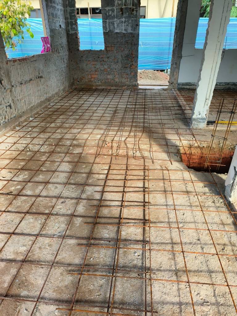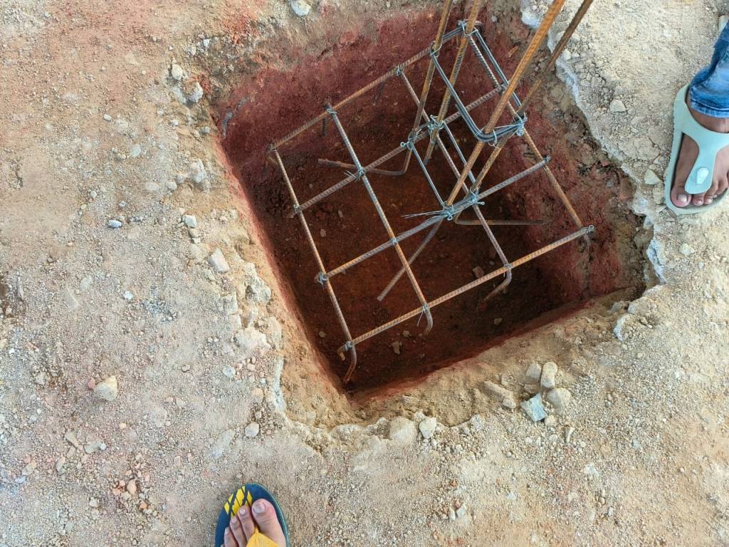 The piling and metal rods being put as foundations of the house . Hopefully this should make the foundation of the house stronger.
