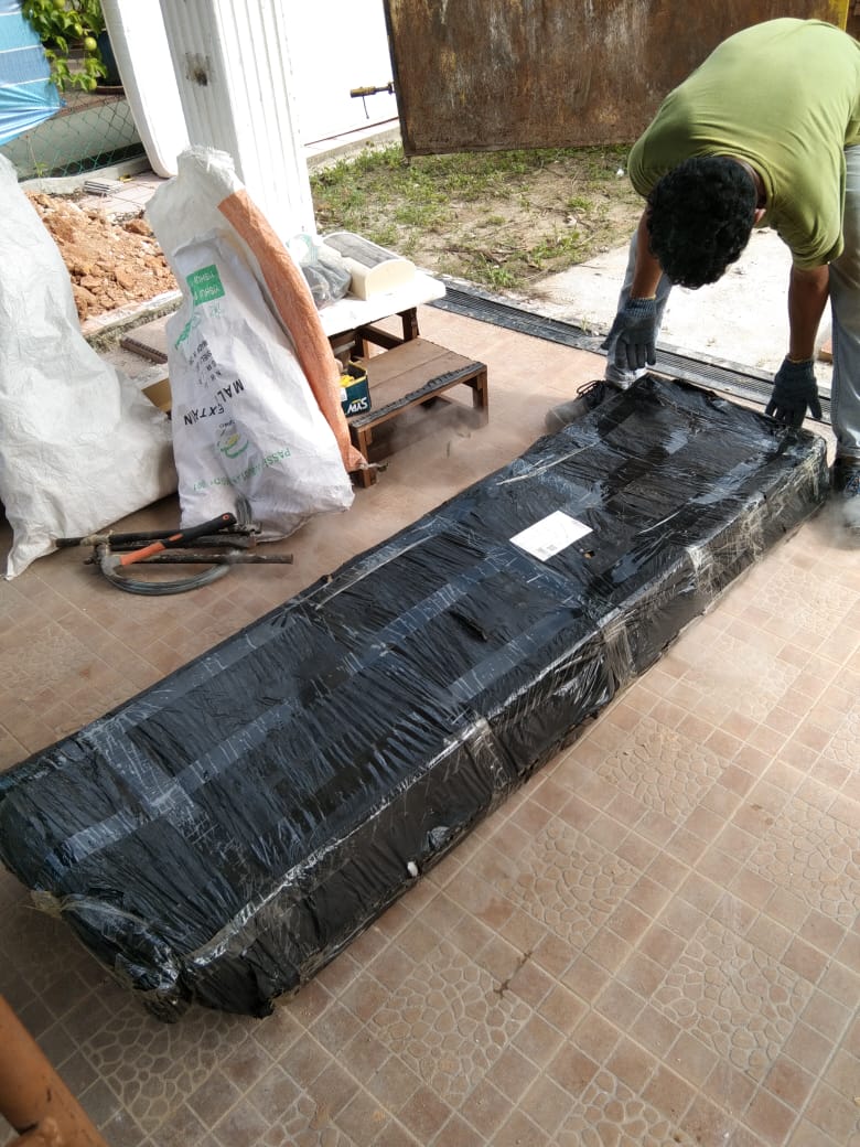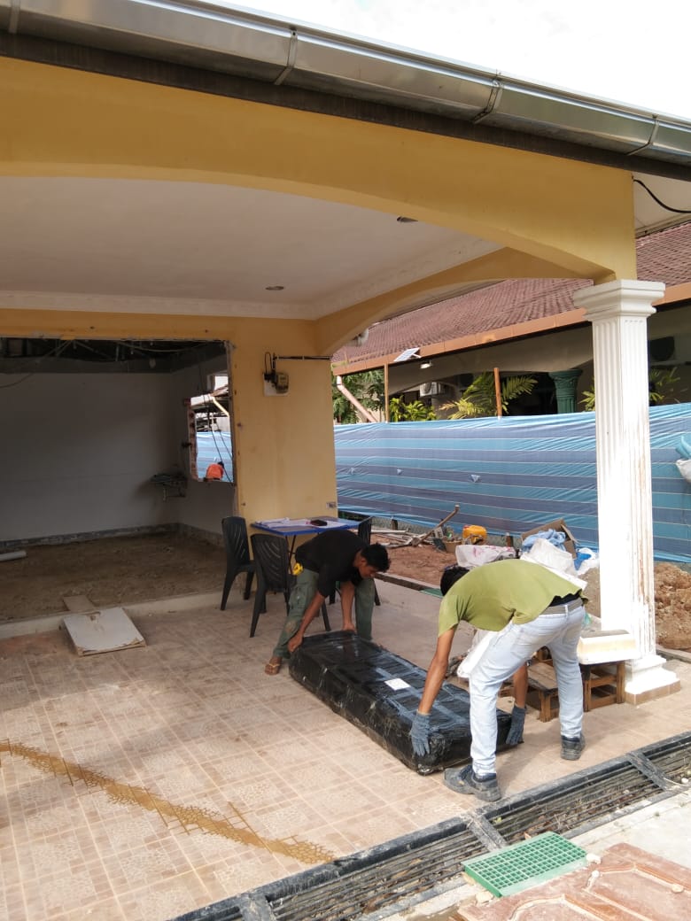 The piling and metal rods being put as foundations of the house . Hopefully this should make the foundation of the house stronger.