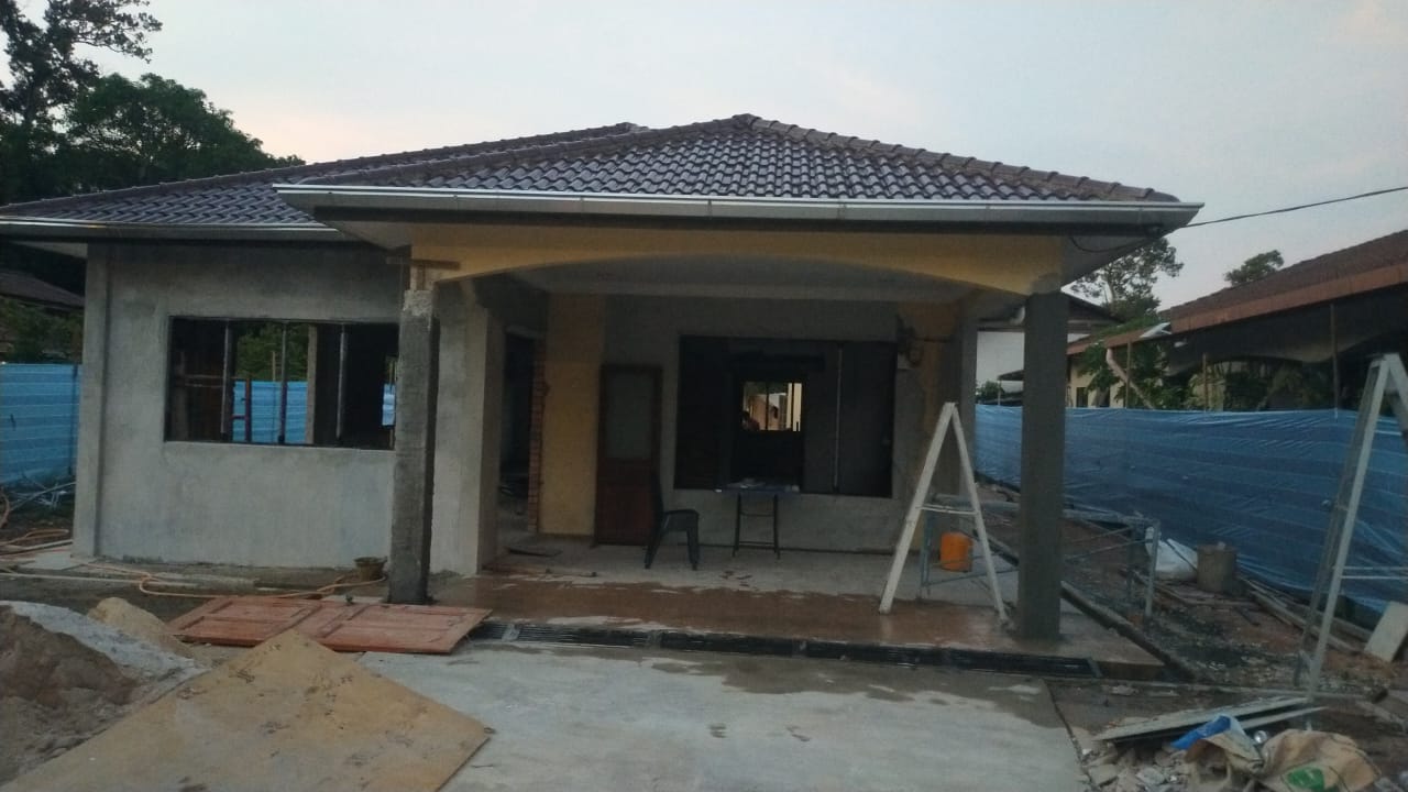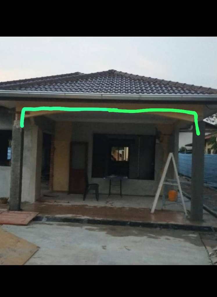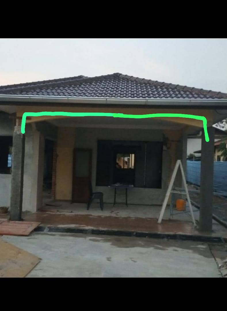 Before ,the house has pseudo-greek white small pillars . Now, those pillars are no longer there and bricked up so that there is no more of a little verandah and becomes part of the living room . As from the photos above, the living room ( before) had sliding doors . This has been bricked up as shown in the 2 photos . The master bedroom will be directly facing the porch. All pillars of the house will not be serated ( as before) but will be plain . No curvature of the frontage as I prefer straight lines . Just want the house to be in straight lines as in a rectangle-shaped. However, now my contractor tells me that this cannot be done as there are metal rods that support the roof beams , sigh . So if that is so, then the curvature has to remain as it is .