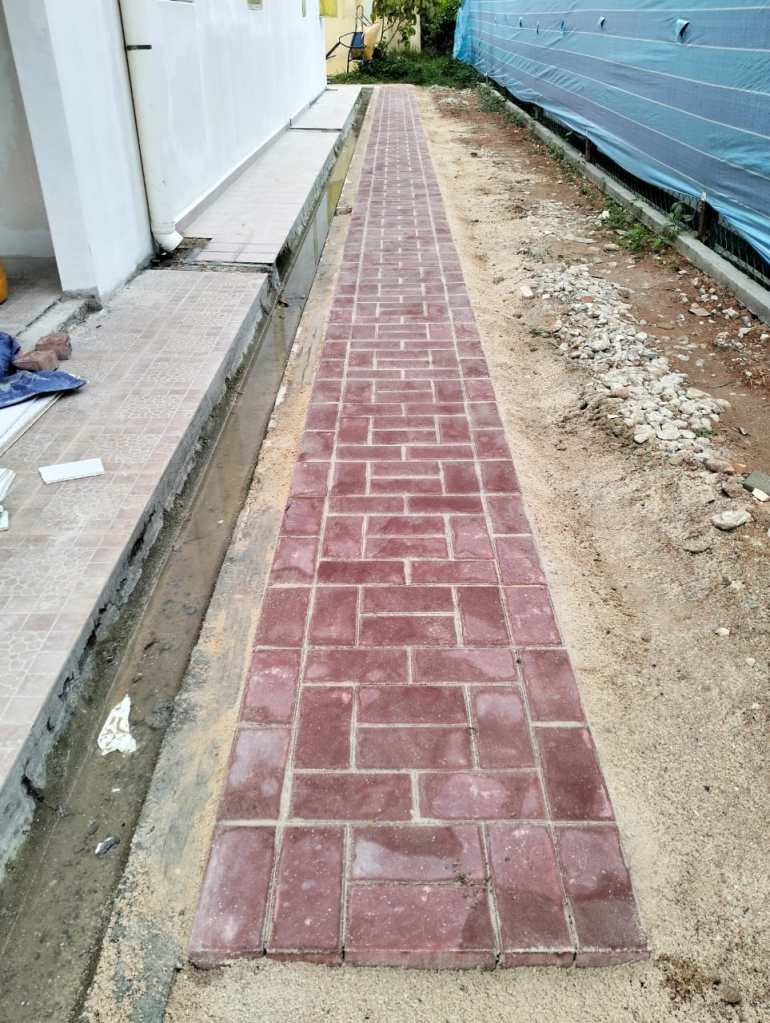 The brick pathway has been done. I thought that the pathway will be in the middle but now is near to the drains and only 2 feet in width . This is wide enough for someone to lug in luggage with wheels.