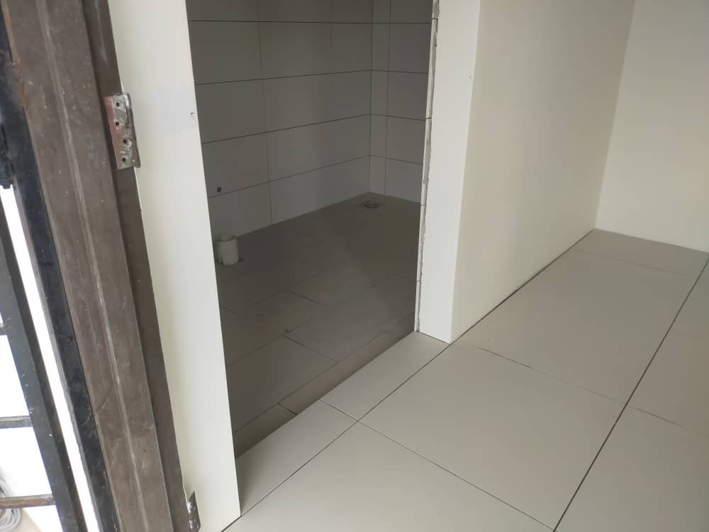 The bathroom fixtures have not been installed yet . I need to buy bathroom taps which I forgot and sinks . I have requested that there should be 4 plug points instead of the 2 plug points . I can fit in a day bed with a small table to put an electrical kettle and a mini fridge . The Rumah Kebun looks livable now . The bathroom is a good size to fit a shower and a small wash basin .