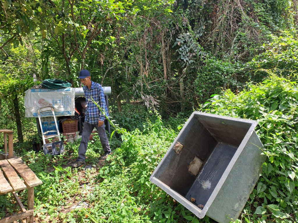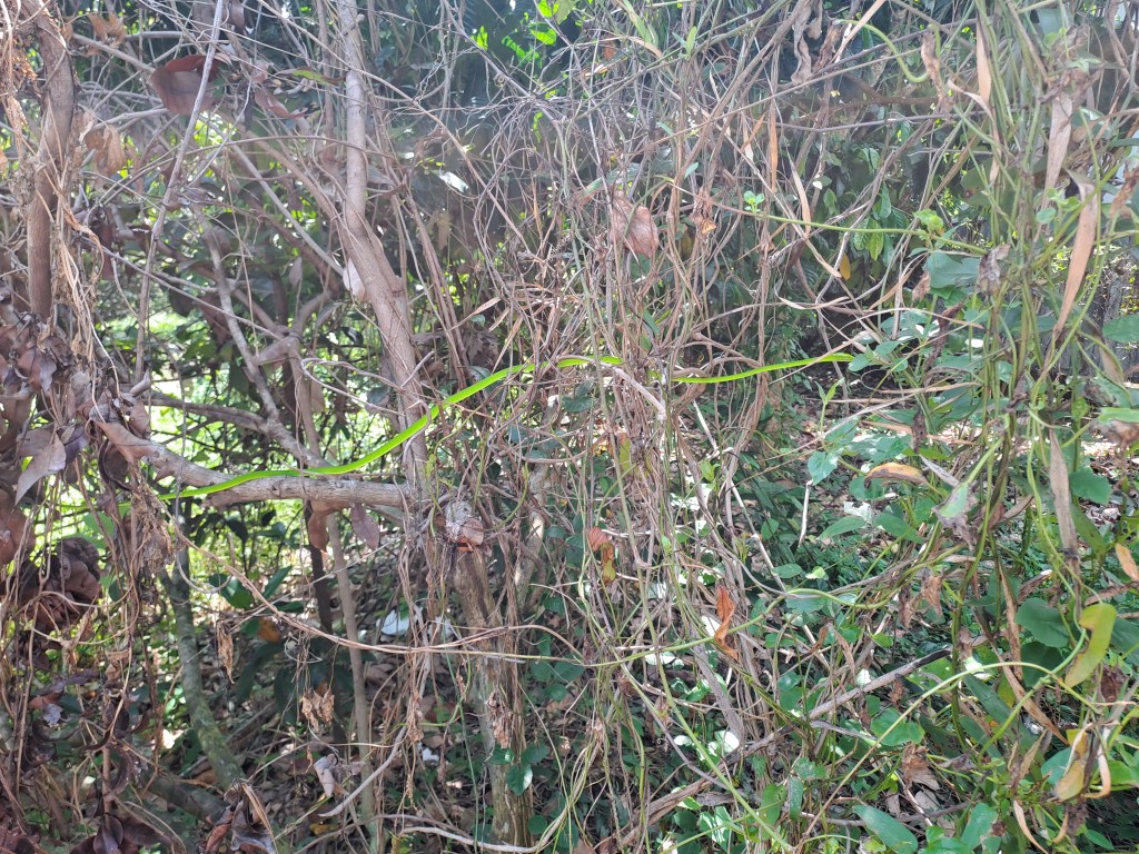 Spotted a grass snake in the bushes in the Kebun. Relatively harmless but not the python as the python will wait for you before it strikes . This is according to Encik Rahman and I believe him. There are traces of wild boars in terms of the rooting activities around trees but I took no photos . Will do that the next time as I am bad at documenting all of my trips to Muar .Afterwards , went with Encik Rahman to look at land that is planted with oil palm in Kampung Sungei Muda . The land is slightly less than 2 acres and there is a bridge to cross it . We did not walk into the land as it has been raining so one really need gum boots to be traipsing about . Muar has many irrigation drains or Parits. Johor as a state is relatively well-developed in terms of infra-structure of roads . Followed Encik Rahman’s car through a palm oil estate to cut across to the main road. This short cut is a small road through an palm oil estate but a tarred one so I can still drive through even though the palms were close near to my windscreen of my car.