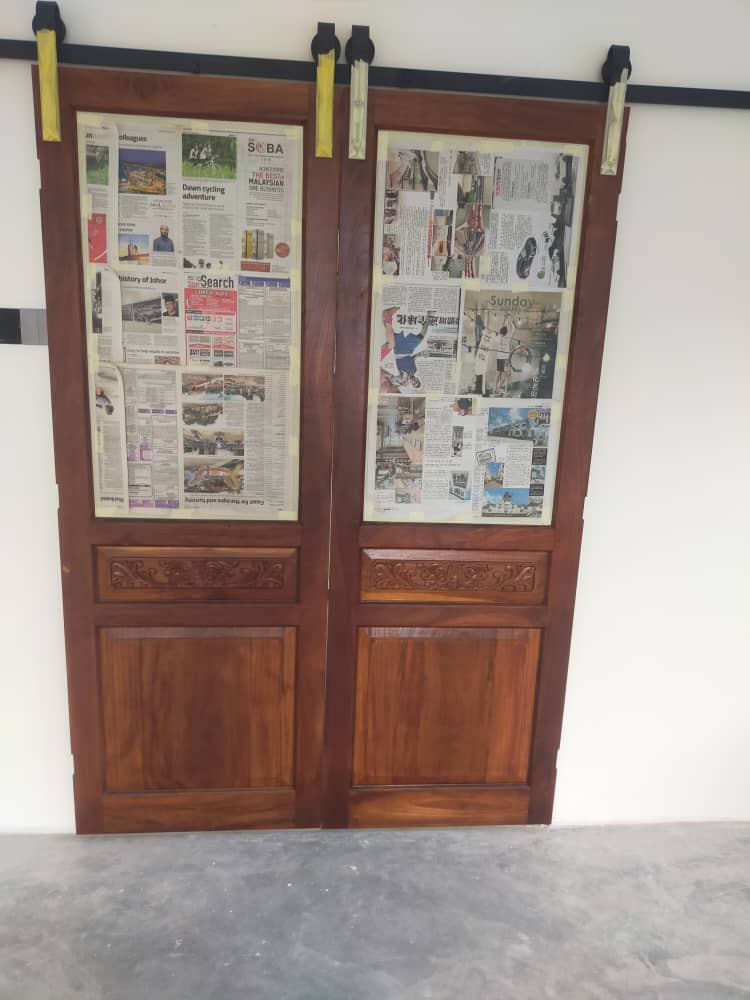 The doors have been done for the Rumah Kebun . The doors are sliding and the glass is frosted . In terms of space, the Rumah Kebun has enough for a day bed and maybe a small table with a mini-fridge. There are 2 plug points in the Rumah Kebun so should be able to have one plug point for the wireless moderm and the other for fridge/kettle if need be . I need to check this out when I go back to the house in Muar. All this small details ……..