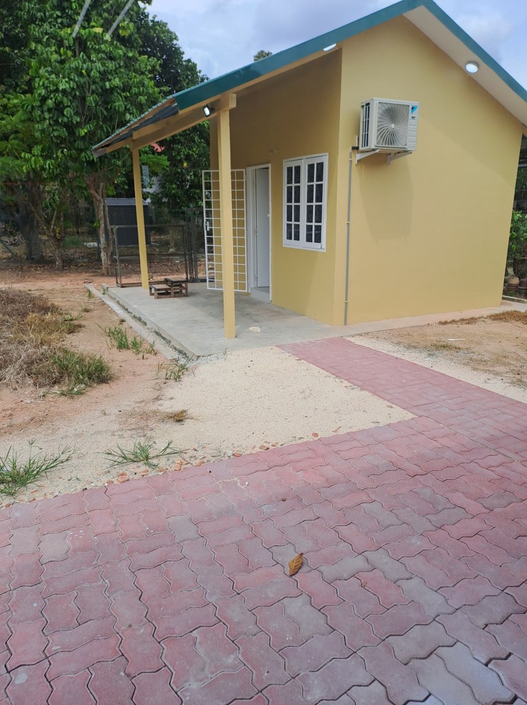 The Rumah Kebun is big enough for a day bed and there are 4 plug points . I can put a mini-fridge , kettle and a small table . There is a WIFI modem as well. There is an AC and a baby ceiling fan so should be comfortable enough . I will get the contractor to do an outdoor sink for the Rumah Kebun too so should be self-contained .