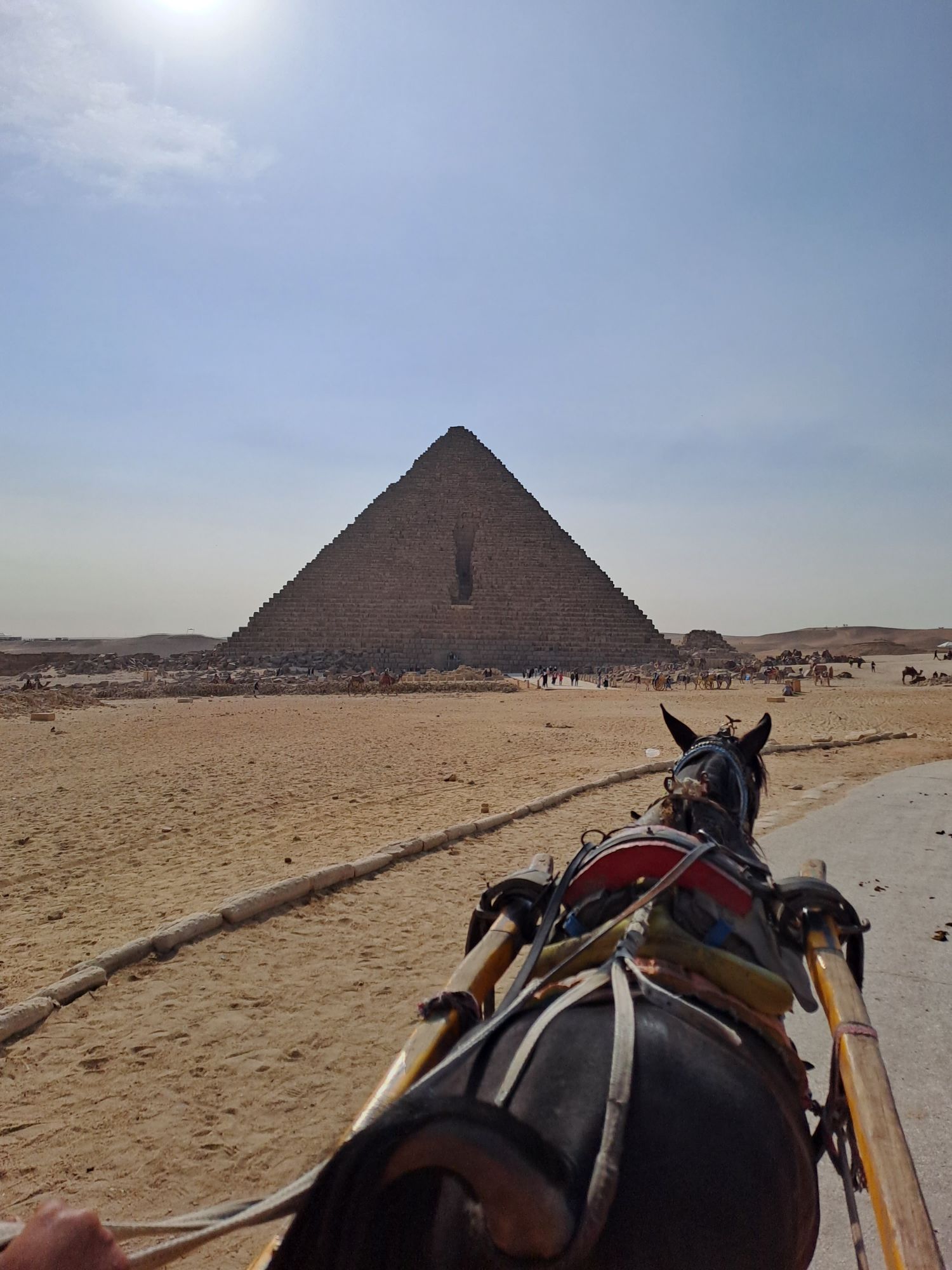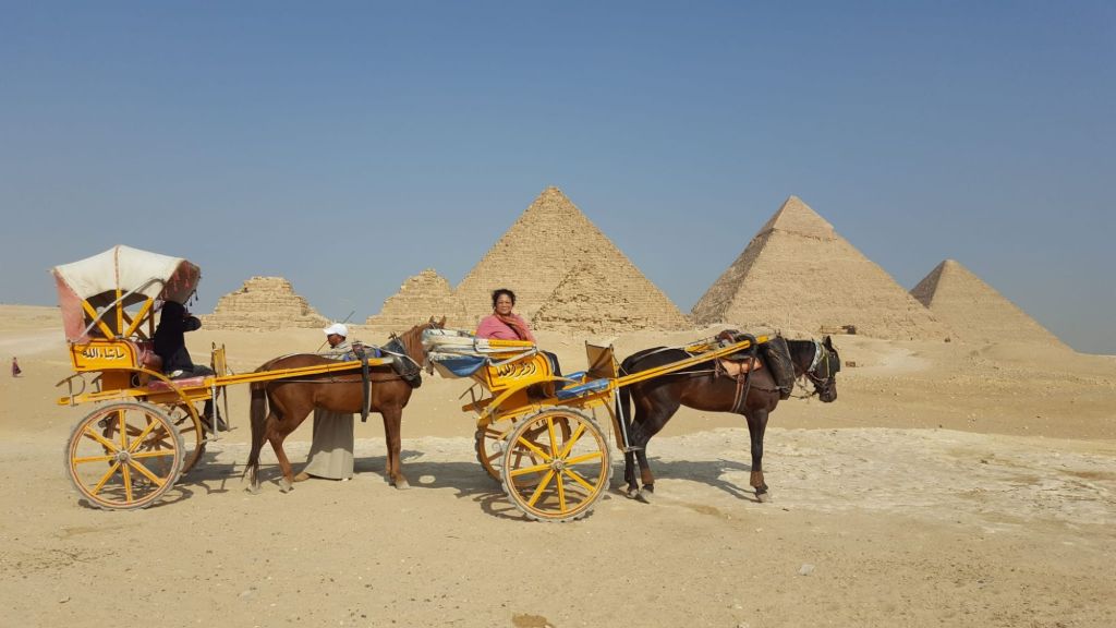 I am way behind in writing this blog as I am unable to blog daily as been going out . Went to see the magnificent pyramids of Giza , just outside of Cairo .There are 9 pyramids in total . The pyramids are certaintly a sight to behold . Took a horse cart to go around the bigger pyramids, a bit scary as the horse canters on uneven ground .