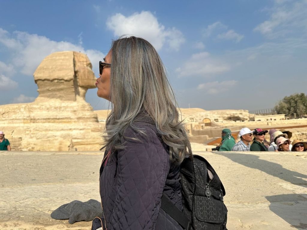 Then we went to visit the Sphinx . She is just a statute as the temple for mummification was behind the sphinx .