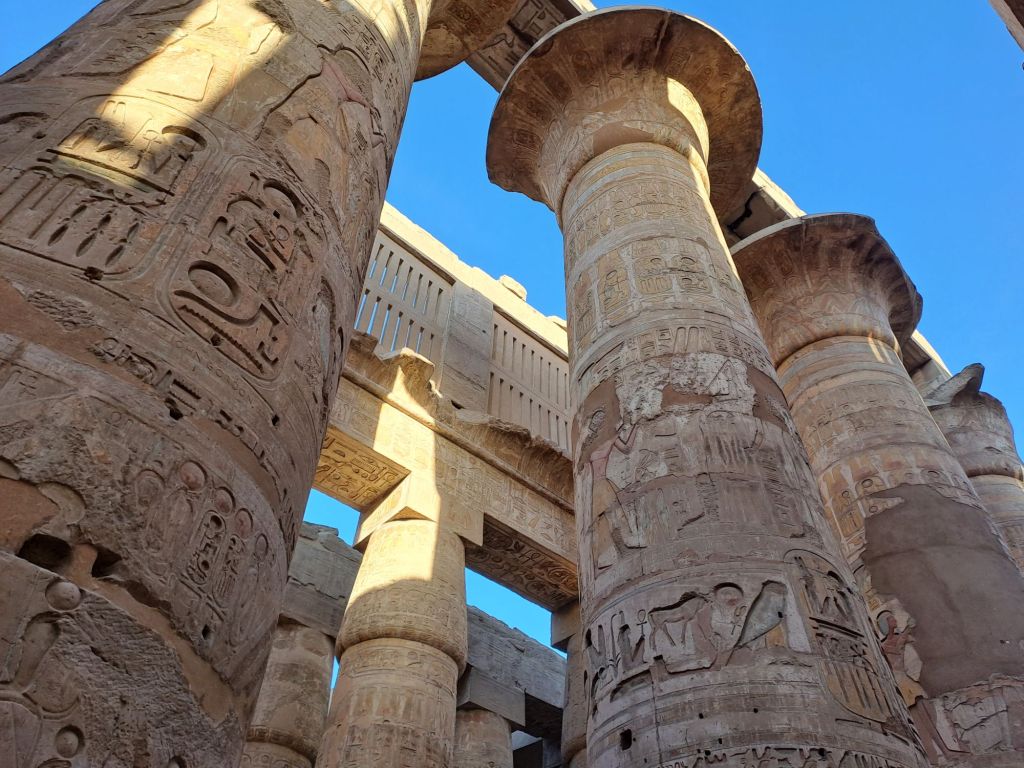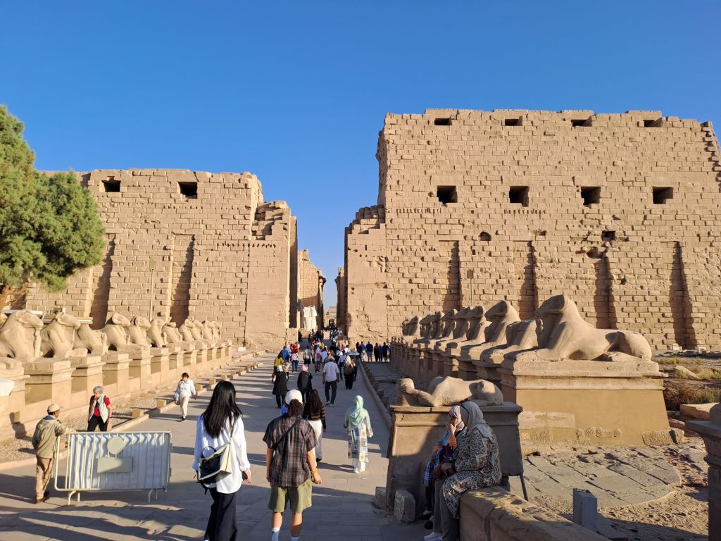 Visited Karnak Temple at 3 pm so not too hot. The temple complex is 60 acres which is enormous .