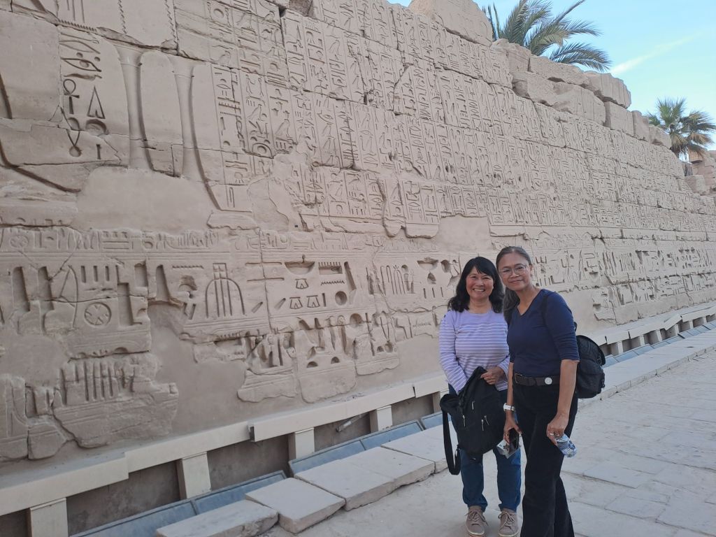 I went around the scrab beetle ( stone thingy )around 7x anti- clockwise for good luck with this Canadian couple . Not too many American tourists due to the war in Gaza .