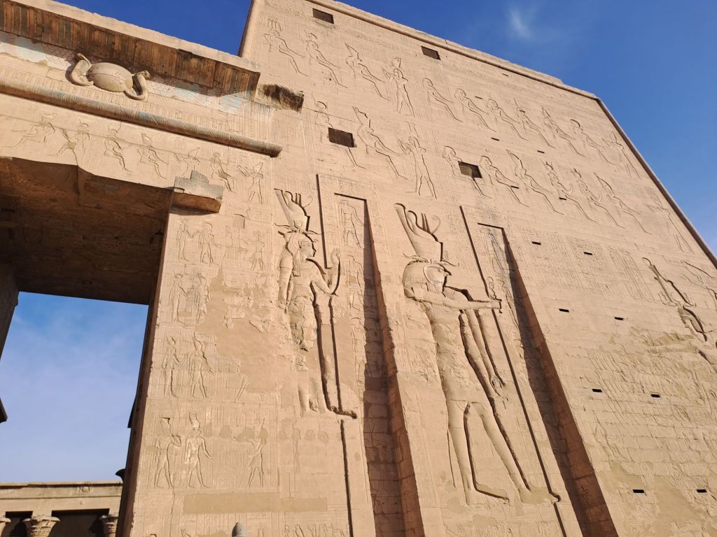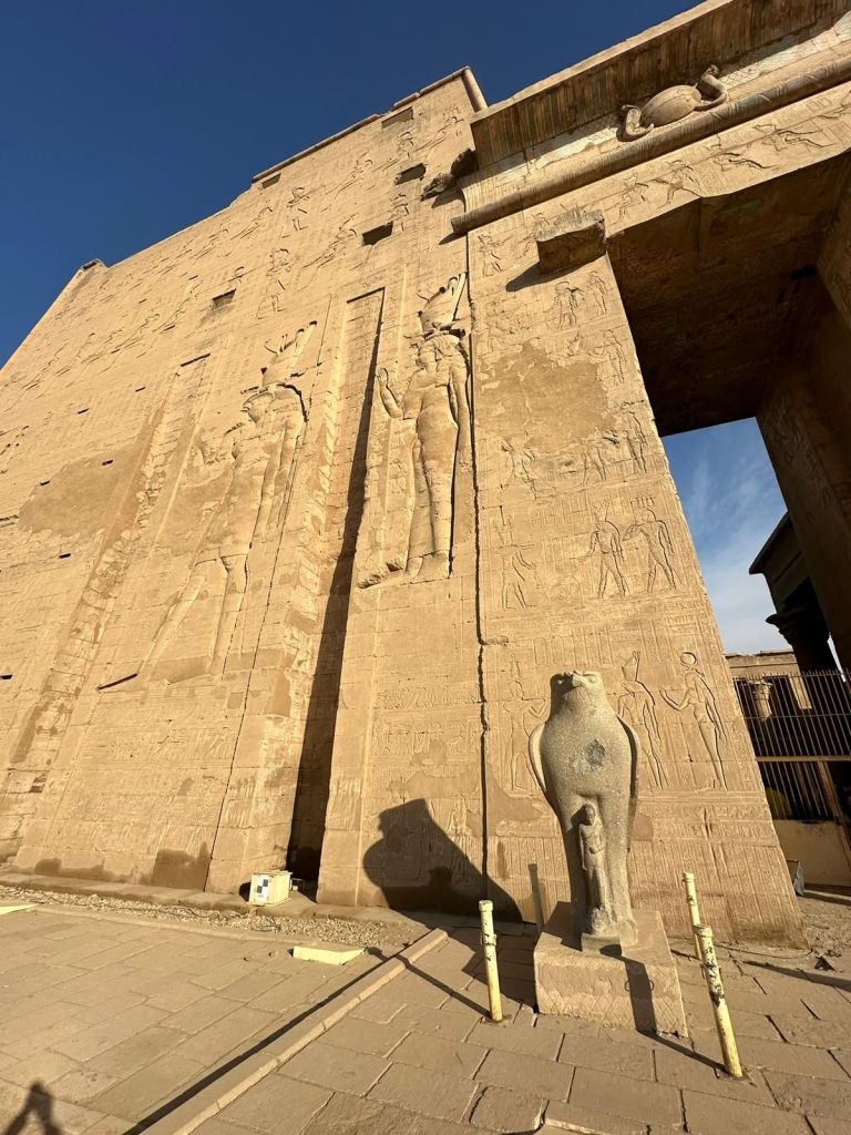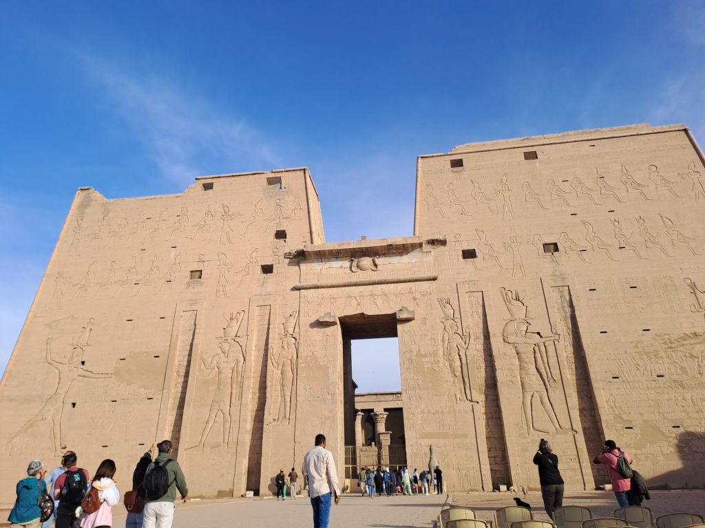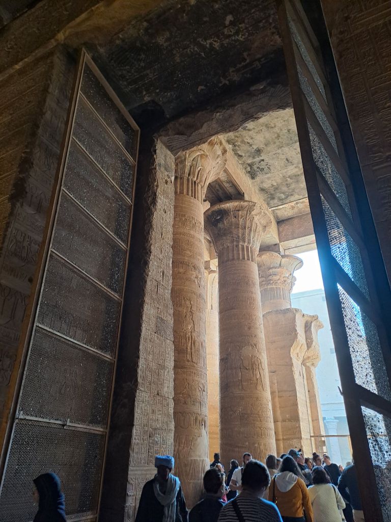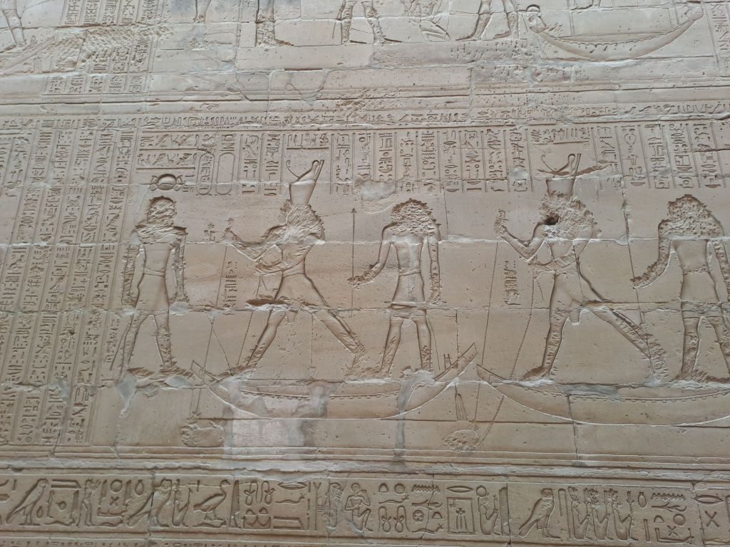 We had spend another night in the boat and reached the town of Edfu . There was a magnificant temple of Edfu which is about 2000 years old . I am finding it difficult to get my head around these 2000 years old thingy . This means like 200x of 100 centuries , the mind just finding it difficult to grasp . The temple is beautifully perserved with etchings out of sandstone. The colors of the etchings have waned due to the debris and mud but the beauty of the Temple remains.