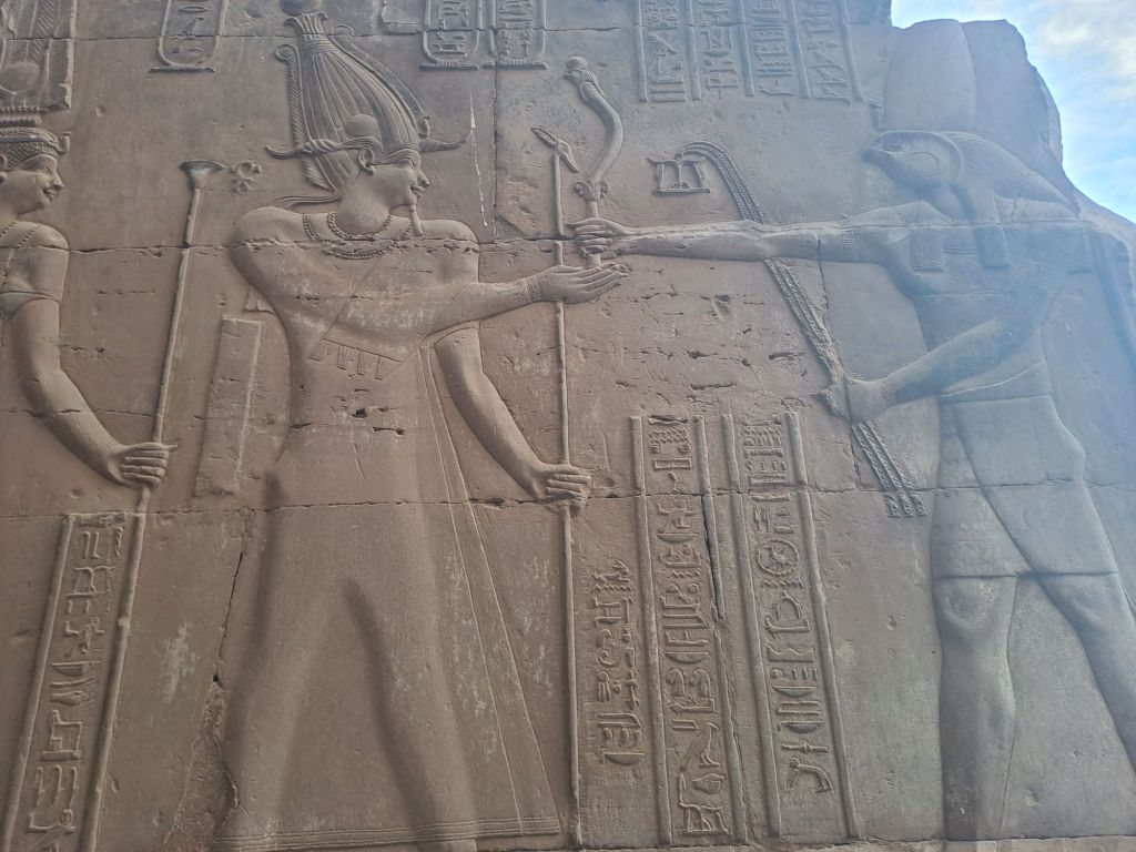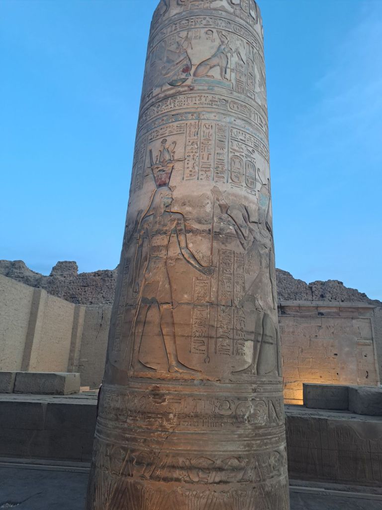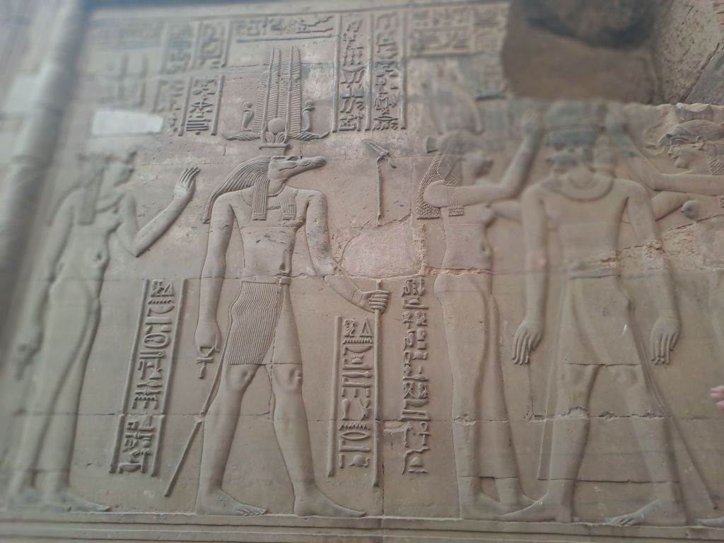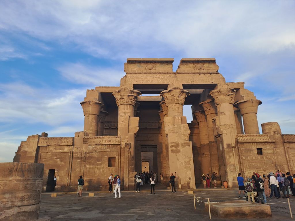 We visited another temple today besides Edfu Temple today . This temple is Kom Ombo Temple sits upstream at the banks of the Nile . This temple is very near to the banks of the river, as we could walk from the boat moorings for about 500 m to the Temple.