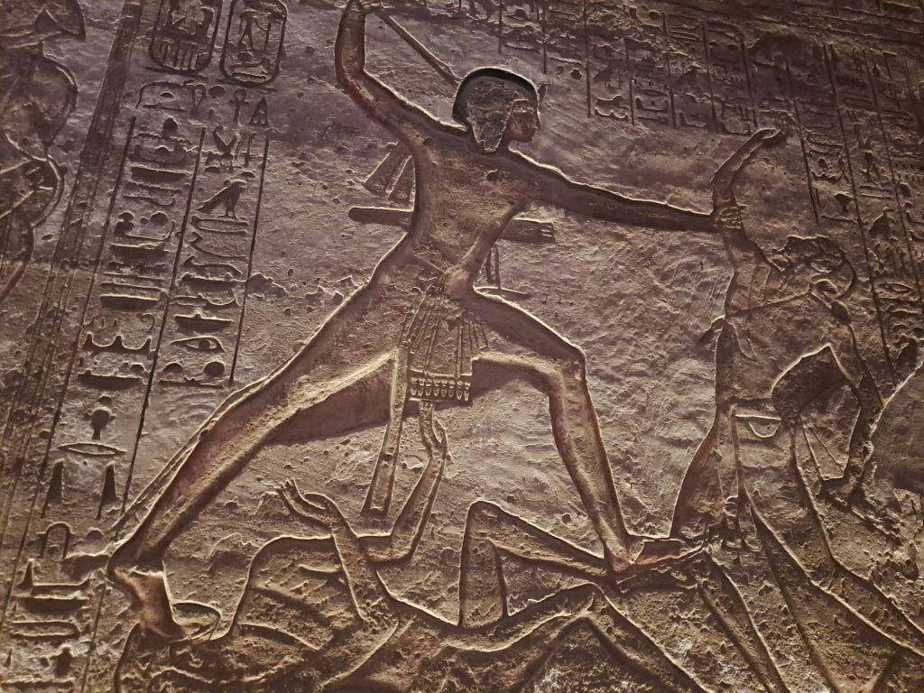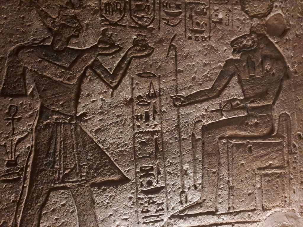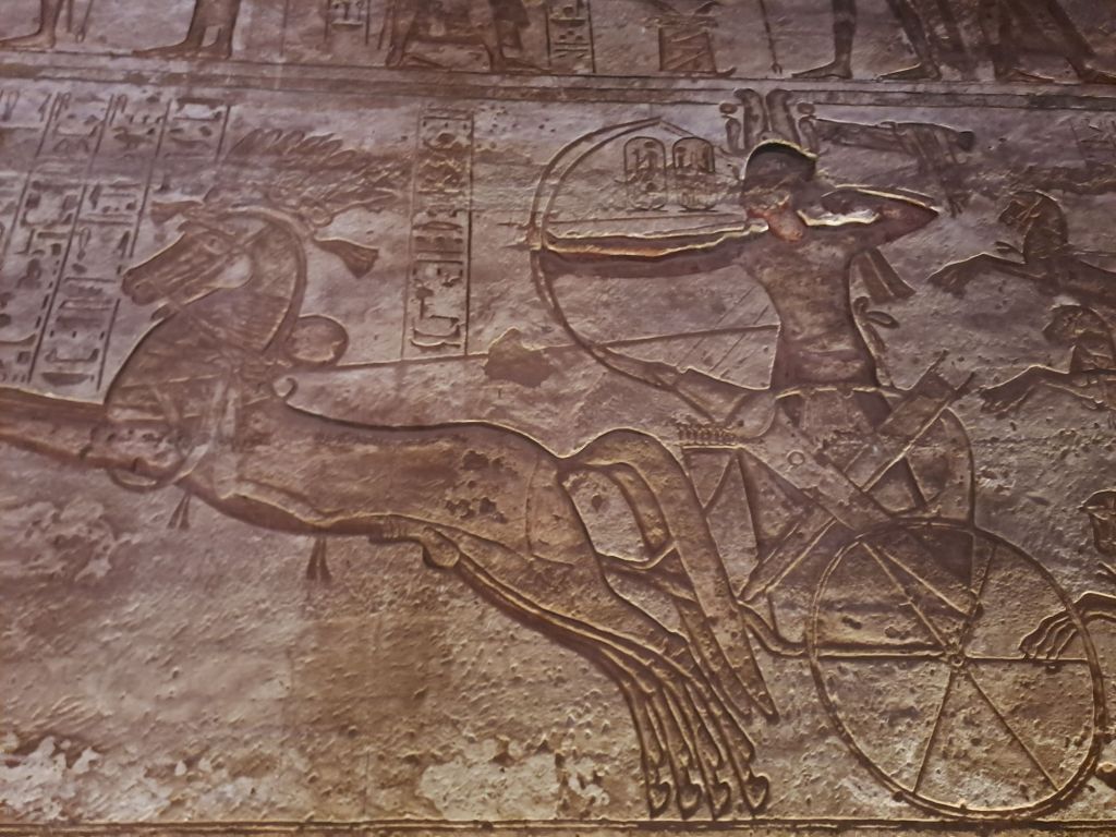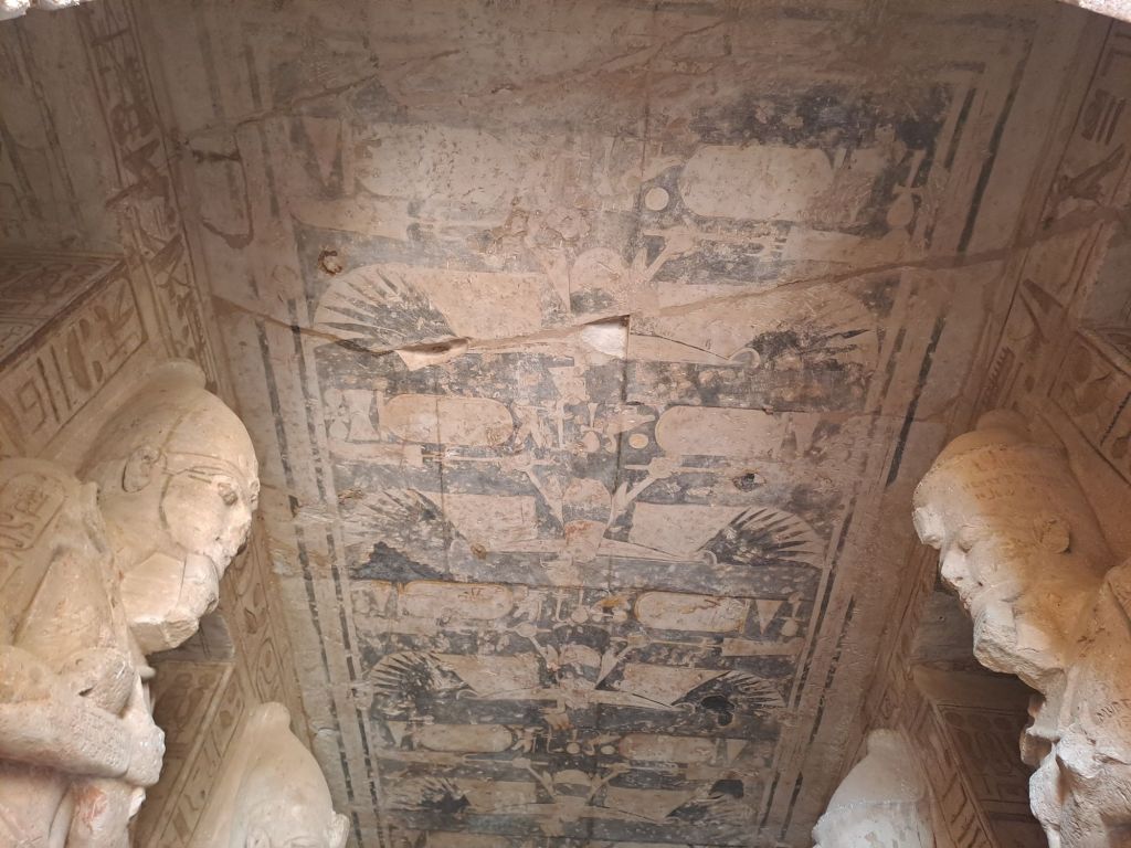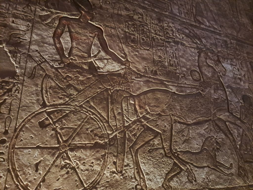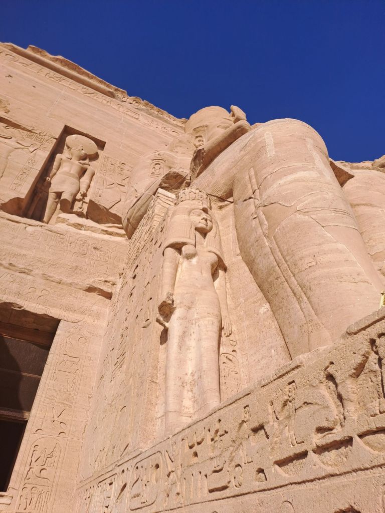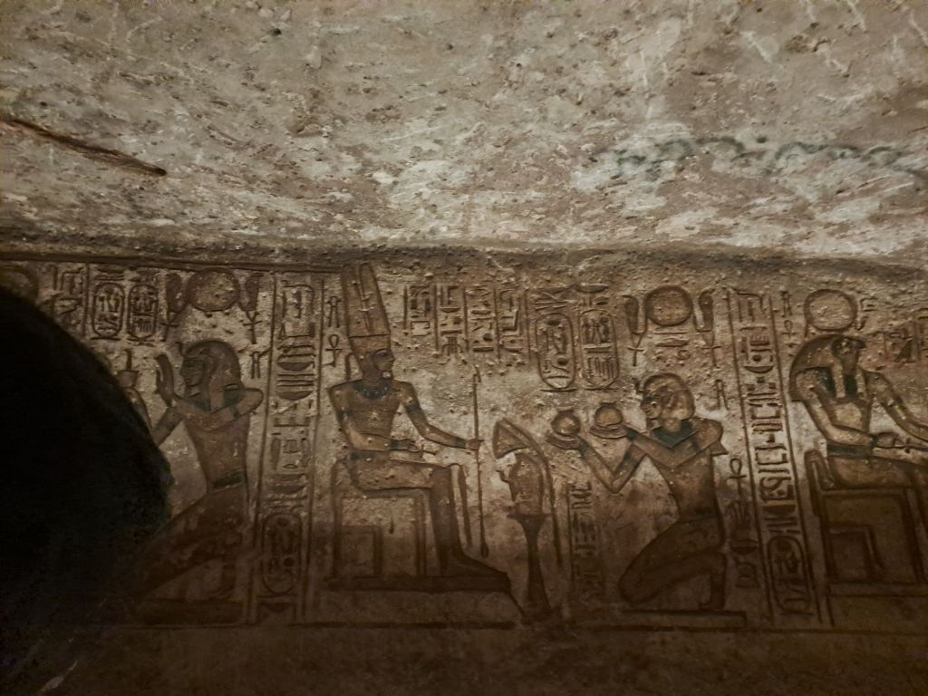 We started our walk from the entrance to the temple . The temple was carved from the cliff . Due to relocation of the temple as a result of the creation of Lake Nasser , they moved the temple in the same site but on higher ground. This had great challenges as one can imagine as they had to move stone by stone and create an artificial mountain as the Great Temple was craved out of a cliff of sandstone .
