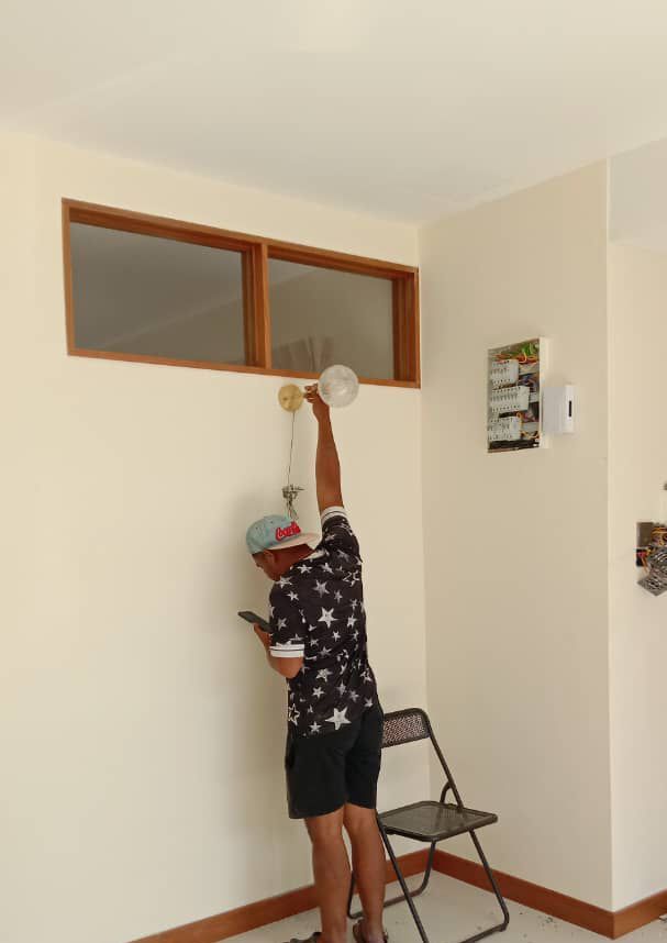 The minor corrections include lengthening the installation height of the sconces at all of the walls in the house . This is because the height of the sconces were or seem to be too short . The other correction that needs to be done is one of the bathroom doors were not adjusted properly . This is because the bathroom doors are installed as barnyard doors that have a sliding mechanism.