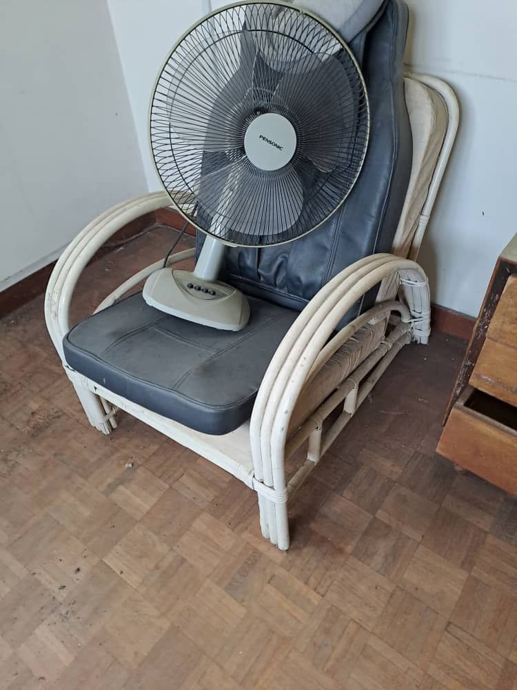 The cane arm chair is I believe in the furniture from the 1970’s . The golden brass bed is my sis’s wedding bed . The bed was a present from my parents to her for her wedding . She has been married for 40 years so the bed is 40 years old . The restorer had to re-paint the flowers as it was faded
