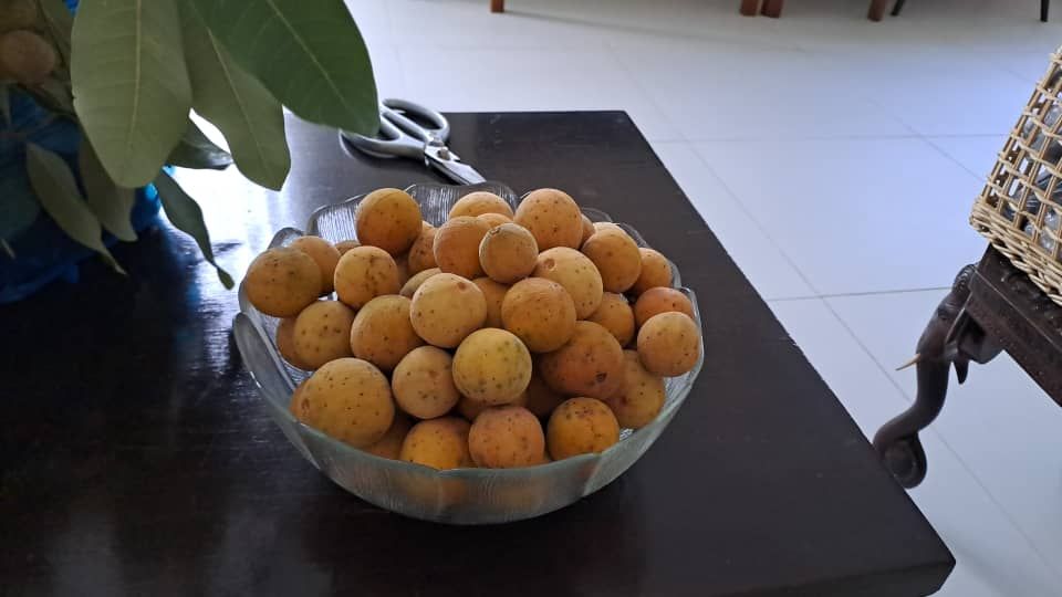 The mata kuchings were sweet but the skin is thin unlike the commercial grown ones that I buy at the market . Those mata kuching are bigger in size , fleshier and the skin thicker than the mata kuchings I have in my garden. Mata kuchings are the local species and probably of the same family of the lychees . There were 4 mata kuching trees in the front garden originally . However, 2 trees had to be cut down as the roots were invasive .