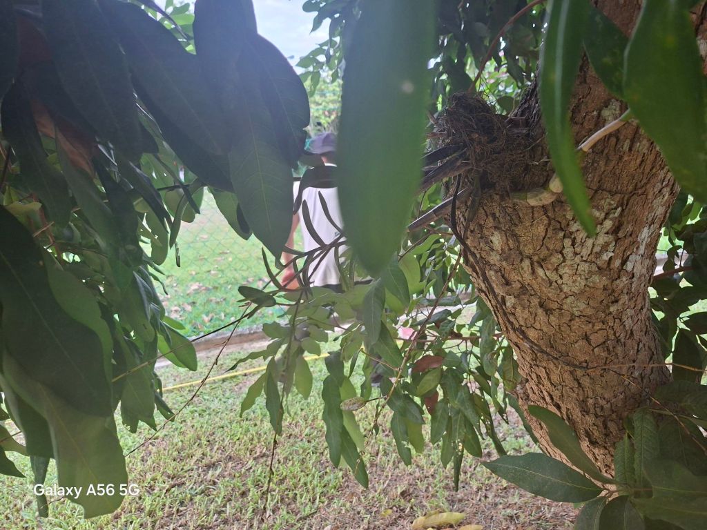 Inspect the fencing at the kebun with Encik Rahman . Encik Rahman brought kueh so we had that with coffee at the house .Discovered 3 holes / gaps at the fencing caused by wild boars . They love burrowing in the soft mud for worms. Took a walk right till the end of the kebun , was sweating profusely .