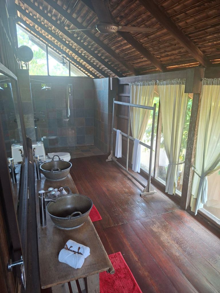 These are old houses so everybody says these houses got spirits or “hantu” . I think this is might be probable eventhough I am personally skeptical of such supernatural beings haha. The guide who showed us around told us a story that a lady guest who was staying in the resort. She wore a bikini while using the resort pool but she complained at night , she was unable to sleep as she was constantly disturbed . My sister theorized that Islamic ghosts or spirits do not encourage sexiness hahaha .Actually, the owner Mr.Alex Lee ( he is Trengganu Chinese ) , has publicly written in one of the articles on Terrapuri and published in theMAS inflight magazine , that he has done a cleansing process on the resort . Interesting, isnt it . He is passionate on the conservation and restoration of such Trengganu houses, kudos to him .