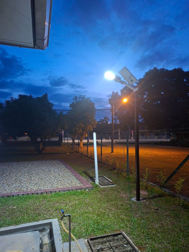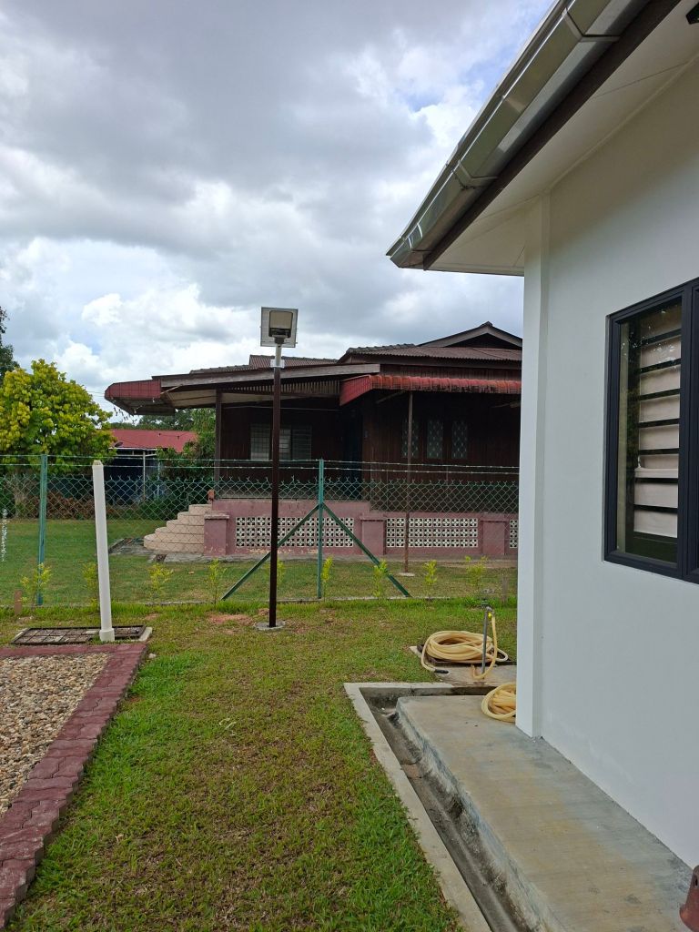 Finally, managed to get the solar lights fixed for the garden and the house . Went on Monday morning with Linda , my friend in Muar to go to a light shop to buy 2 solar lights for the house and 2 solar spotlights for the garden.