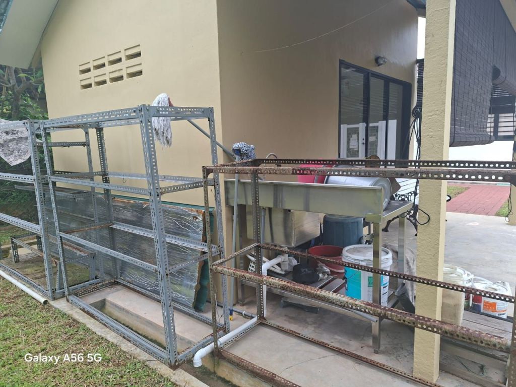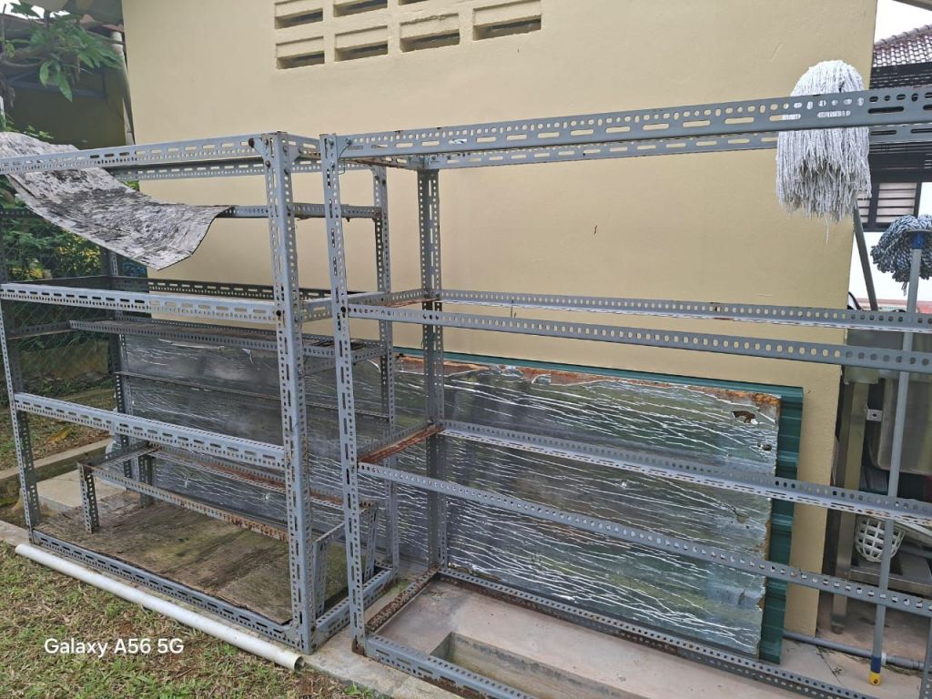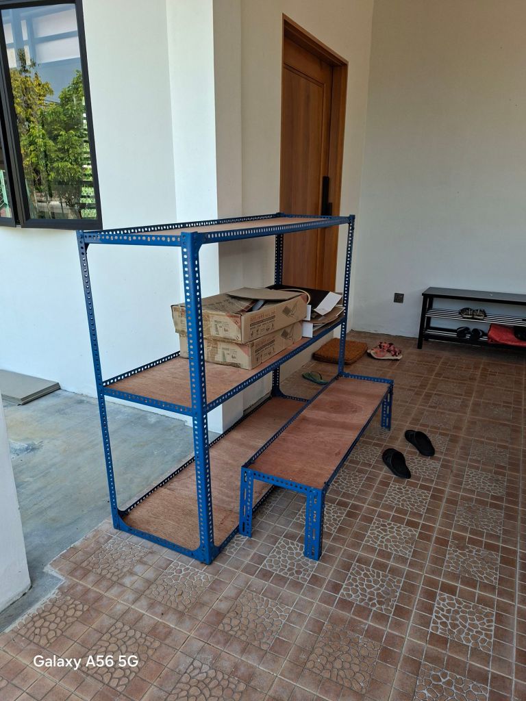 There was leftover steel racks of shelving in the house . My late uncle ( the previous owner of the house) had used the shelving in a small store room in the house & in the rumah kebun.